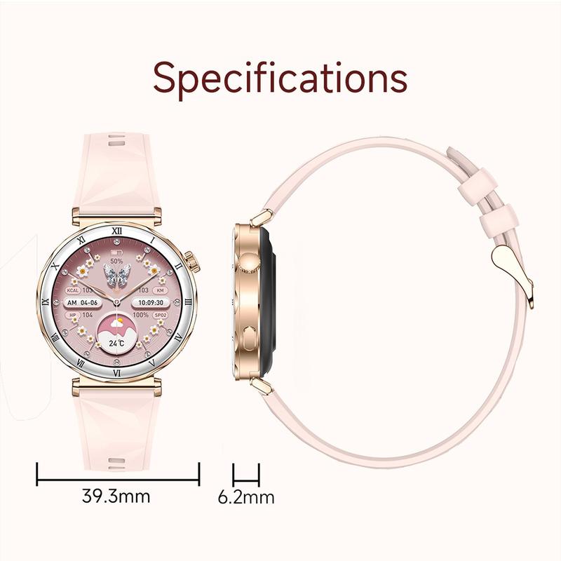 Relógio inteligente feminino i222 com ecrã AMOLED de 1.19" - Relógio com chamadas Bluetooth, monitor de fitness, monitorização da saúde e bracelete de silicone