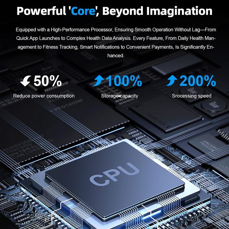 Combinando uma estrutura em liga de zinco de 0,045 kg leve como uma pena com um ecrã AMOLED curvo de 1,96 polegadas, o MT61 mantém-no informado, saudável e ligado sem pesar no seu pulso. O seu perfil de sete milímetros desliza facilmente sob os punhos das camisas, enquanto as chamadas de voz por Bluetooth 5.4, o acompanhamento da saúde ao longo de todo o dia e os mostradores de relógio 3D personalizáveis transformam cada olhar numa visão acionável.