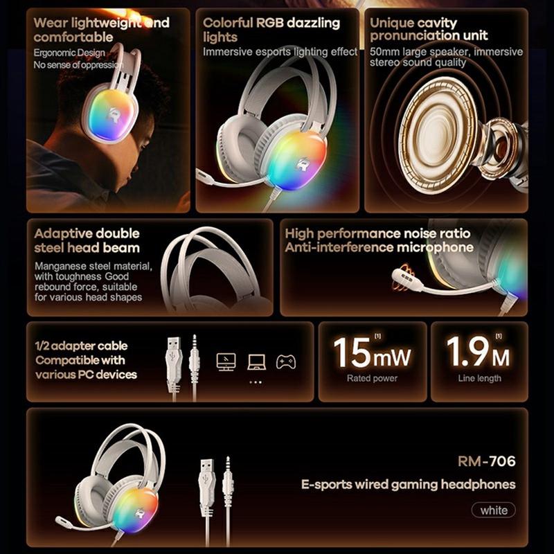 Remax RM-706 Auscultadores com fios sobre o ouvido / Auscultadores para jogos com microfone e luz RGB colorida