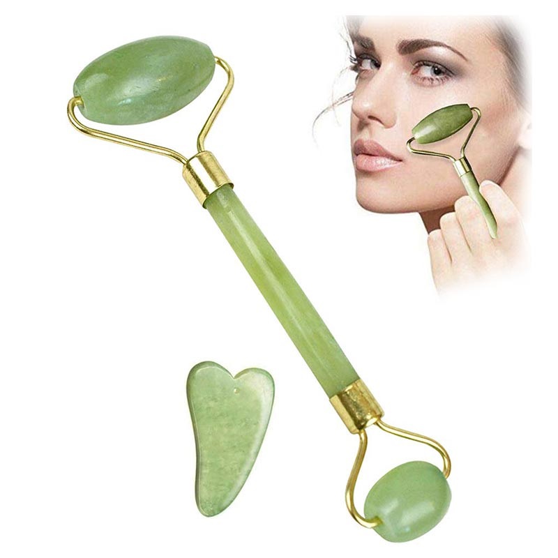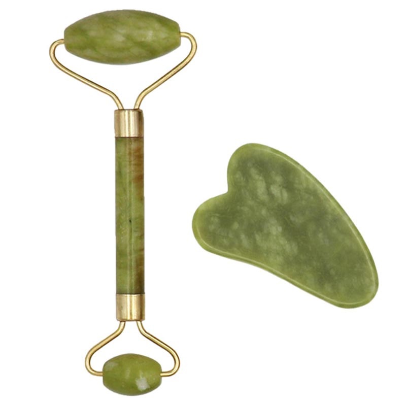 Rolo de Massagem Facial de Jade Natural com Raspador Gua Sha