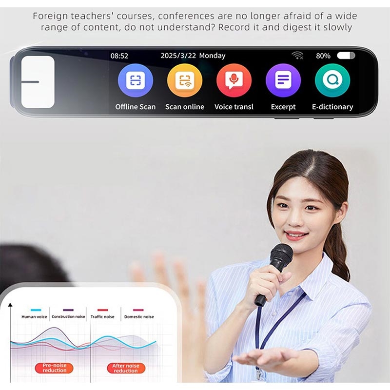 O S08B é mais do que um tradutor - é um centro de comunicação portátil. Abrange uma enorme variedade de idiomas e oferece capacidades online e offline, tornando-o ideal para viagens internacionais, reuniões de negócios e estudos. O seu tamanho compacto e as suas caraterísticas multifuncionais fazem dele uma solução tudo-em-um para a comunicação global.