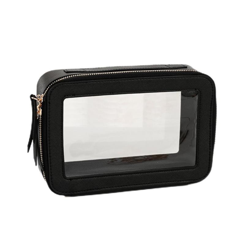 Saco de maquilhagem transparente de camada única Saco de cosmética em couro PU à prova de água - Preto