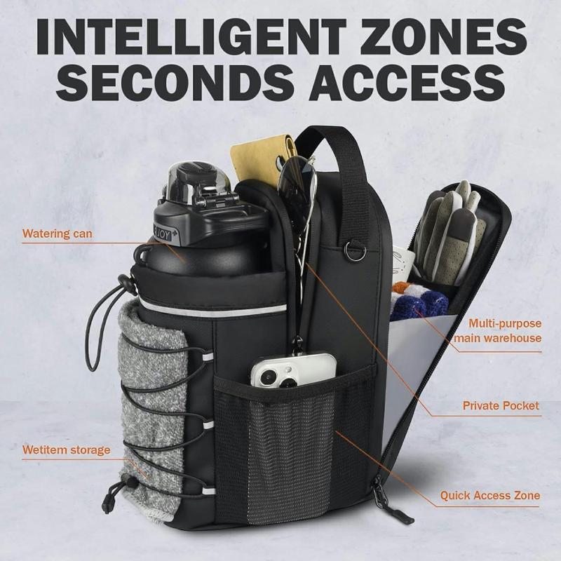 Melhore a sua rotina de exercícios com um saco que mantém a hidratação, a tecnologia e a segurança literalmente ao seu lado - sem contacto com o chão, sem complicações.