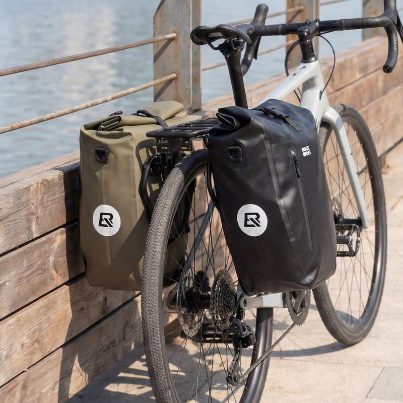 Saco traseiro impermeável para bicicleta Rockbros AS-166 de 20l - Saco conversível com alça de ombro, saco de ciclismo refletor com fecho enrolável