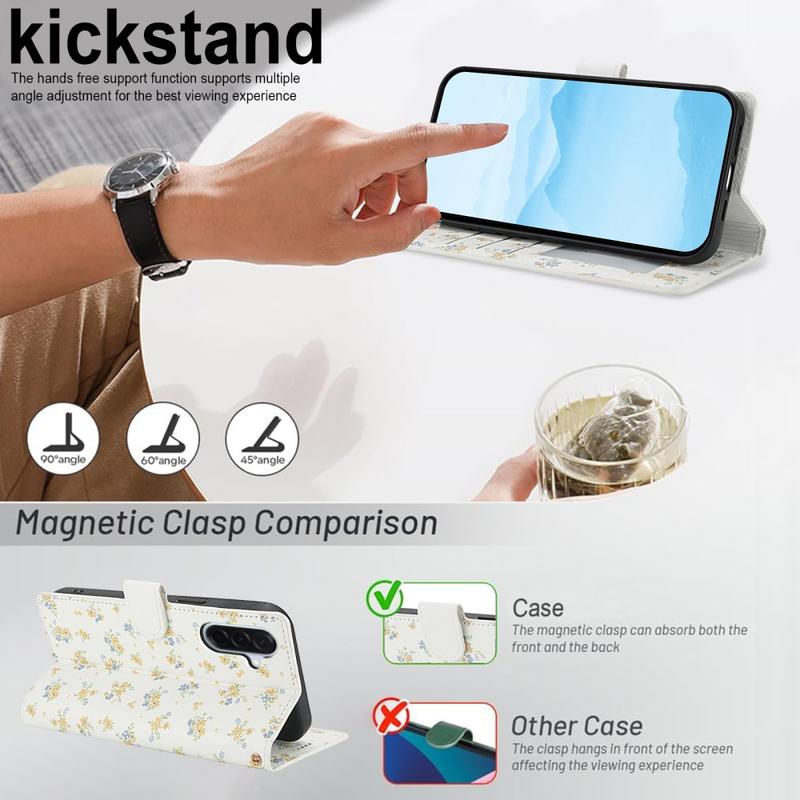 Refresque o seu Samsung Galaxy A37 com uma carteira flip fina que combina proteção segura e praticidade no dia a dia. A frente com costuras rômbicas e o padrão floral minúsculo conferem um estilo elegante, enquanto uma capa em TPU suave amortece as quedas e um revestimento em poliuretano protege contra riscos. Múltiplas ranhuras para cartões, um bolso para dinheiro e uma correia de pulso incluída fazem desta bolsa a solução de transporte ideal para deslocações, viagens ou saídas à noite.