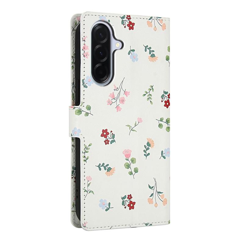 Refresque o seu Samsung Galaxy A37 com uma carteira flip fina que combina proteção segura e praticidade no dia a dia. A frente com costuras rômbicas e o padrão floral minúsculo conferem um estilo elegante, enquanto uma capa em TPU suave amortece as quedas e um revestimento em poliuretano protege contra riscos. Múltiplas ranhuras para cartões, um bolso para dinheiro e uma correia de pulso incluída fazem desta bolsa a solução de transporte ideal para deslocações, viagens ou saídas à noite.