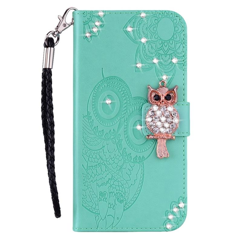 Samsung Galaxy A54 5G Capa para carteira com strass de coruja - Ciano