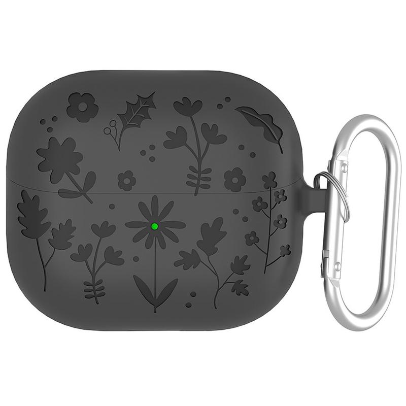 Capa de silicone líquido com padrão de flores e mosquetão para Samsung Galaxy Buds3, Galaxy Buds3 Pro