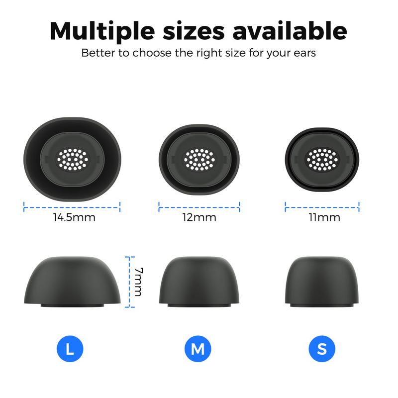 - Três tamanhos (S / M / L) acomodam canais auditivos de 10 mm a 14 mm, garantindo sessões de audição mais longas sem pontos de pressão.