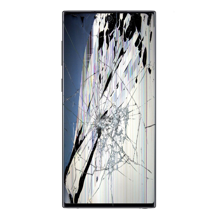• Your Samsung Galaxy Note 10 looks like in the picture? If the Touchscreen doesn't react or it is badly damaged and the LCD screen displays unusual artefacts or doesn't work at all, than your device needs a LCD and Touch Screen repair.