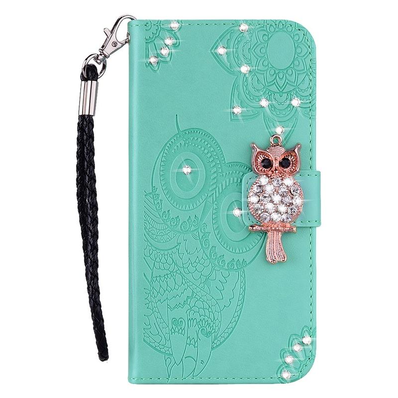 - Capa de carteira de coruja com strass para Samsung Galaxy S24 FE