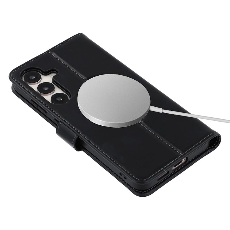 Capa de couro para carteira MyTPhone CardMate Premium para Samsung Galaxy S24 FE - Suporte de pé, suporte para cartões, suporte para carregamento sem fios, 2 protecções de ecrã