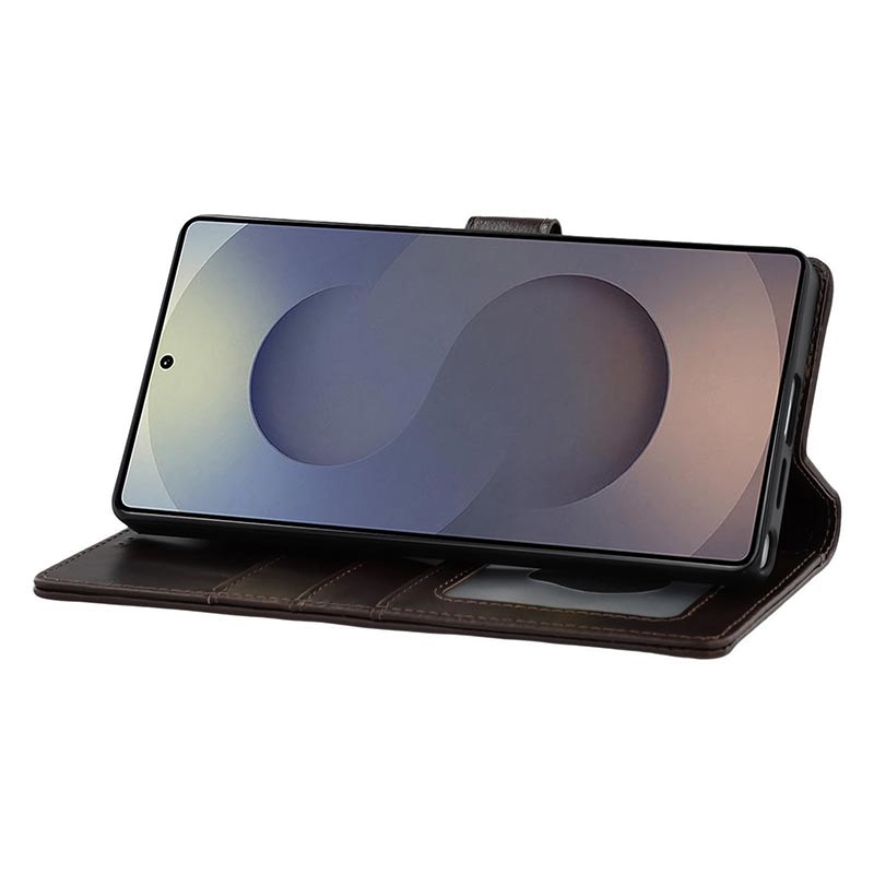 Capa de couro para carteira MyTPhone CardMate Premium para Samsung Galaxy S25 Ultra - Suporte de pé, suporte para cartões, suporte para carregamento sem fios, 2 protecções de ecrã