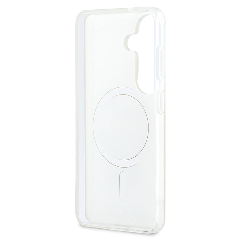 Melhore o seu visual diário com a capa magnética Karl Lagerfeld IML Karl e Choupette Back Logo para Samsung Galaxy S26. Concebida para combinar estilo premium com proteção prática, esta capa híbrida apresenta o icónico logótipo com a silhueta de Karl e Choupette na parte traseira para um acabamento moderno e vanguardista. Com uma parte traseira rígida em PC e laterais flexíveis em TPU, protege o seu telemóvel do desgaste diário, mantendo-se fina, confortável e fácil de segurar.