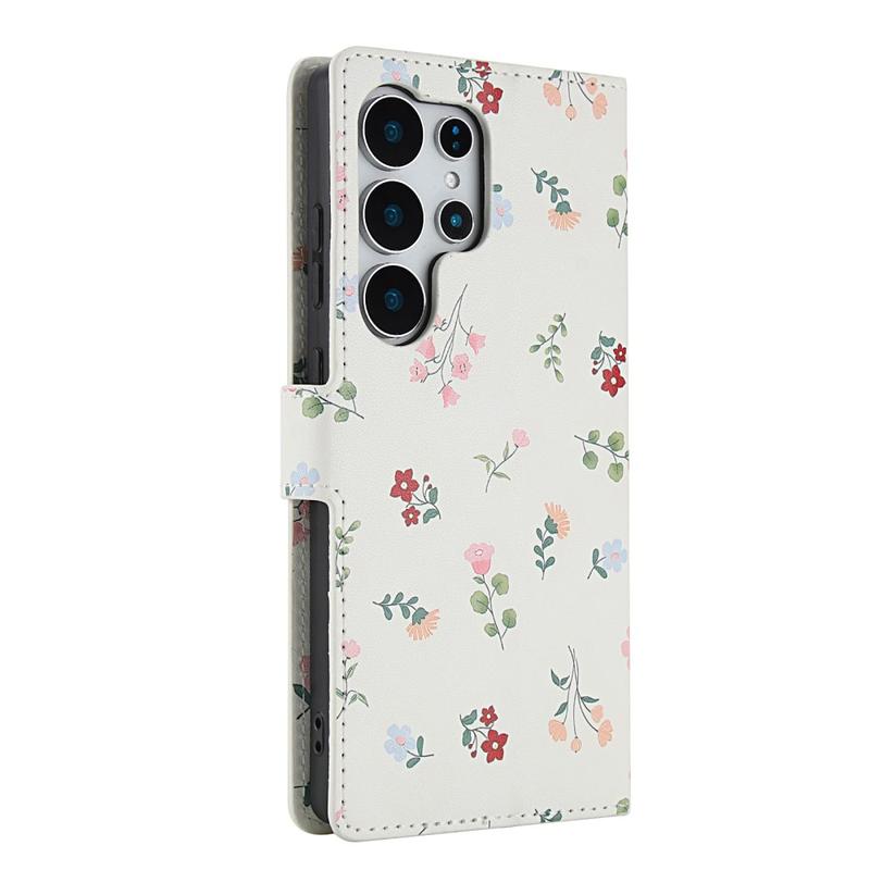 Capa carteira floral rômbica para Samsung Galaxy S26 Ultra - com correia e ranhuras para cartões