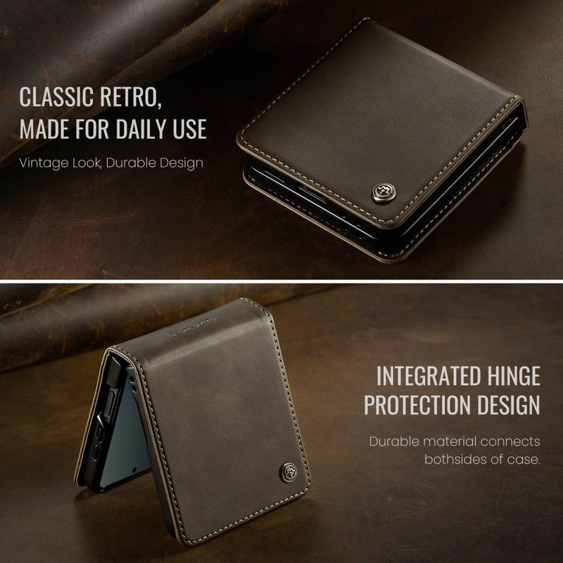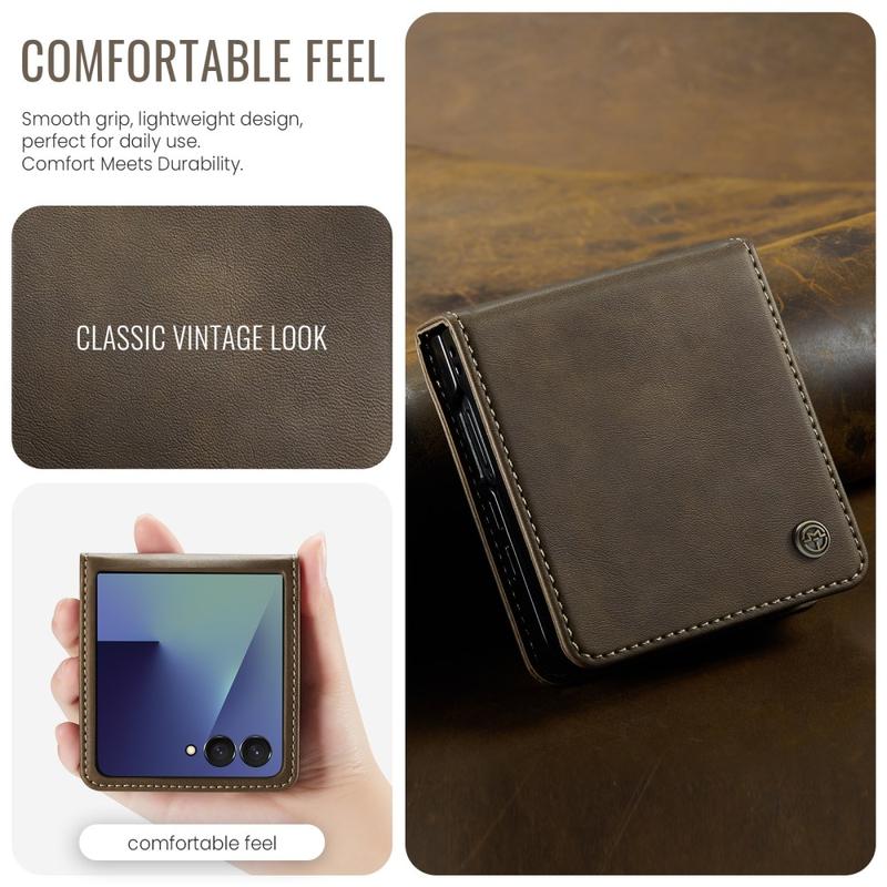 Samsung Galaxy Z Flip7 Caseme 033 Capa para carteira com textura de bezerro e bloqueio RFID