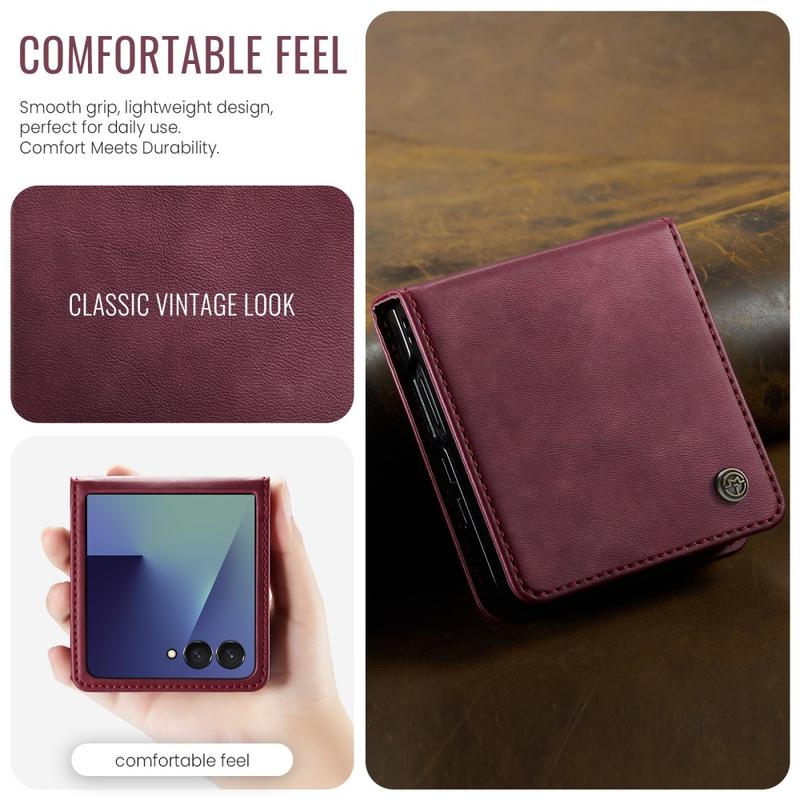 Caseme 033 Capa para carteira com textura de bezerro, com bloqueio RFID e função de suporte para Samsung Galaxy Z Flip7