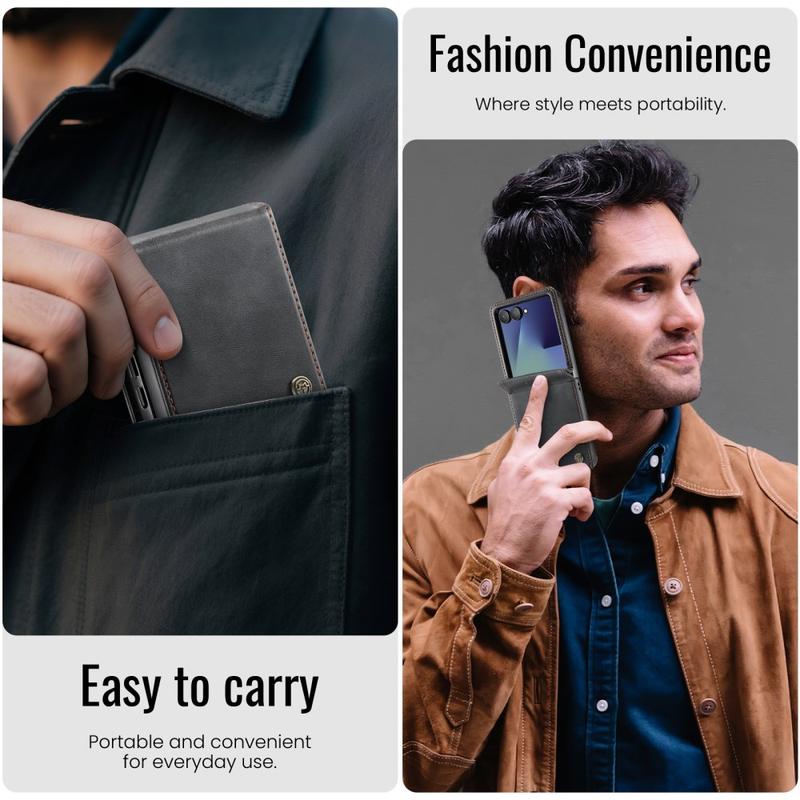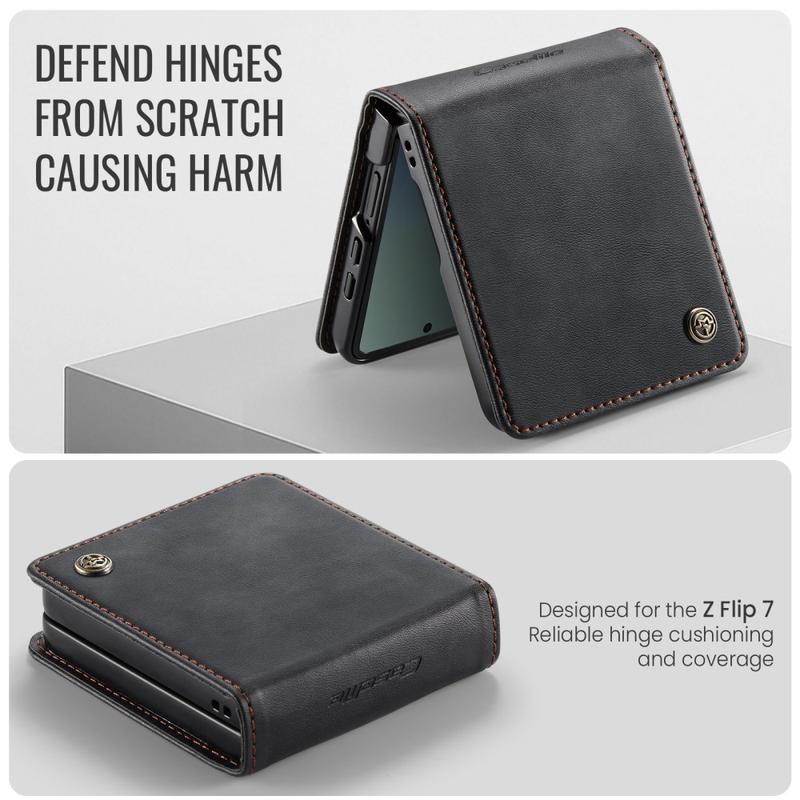 Caseme 033 Capa para carteira com textura de bezerro, com bloqueio RFID e função de suporte para Samsung Galaxy Z Flip7