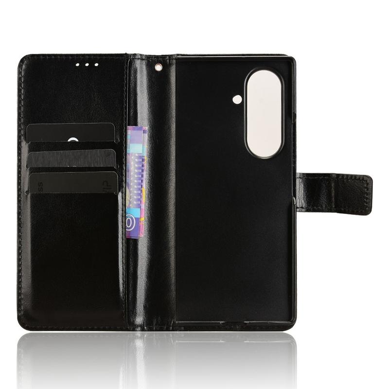 O nome "Crazy Horse" vem da selaria equestre tradicional; a superfície texturizada é tratada com ceras que criam um efeito de dois tons, imitando o couro de grão integral, mantendo-se amigo dos animais, mais leve e mais resistente a riscos. Isto torna-o ideal para acessórios para telemóveis de uso diário, onde tanto a durabilidade como o estilo são importantes.