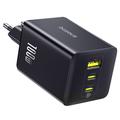 Carregador rápido de porta dupla Acefast A116 GaN 35W com ecrã LED de energia - Preto