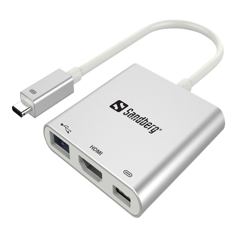 Sandberg USB-C Mini Dock HDMI+USB permite que você conecte um monitor extra, uma TV ou um projetor ao seu computador com uma porta USB-C. Além disso, você obtém uma porta USB 3.0 A padrão para conectar dispositivos USB, bem como uma taxa de transferência USB-C para conectar a energia. Dessa forma, seu computador pode ser ligado enquanto o dock estiver conectado.