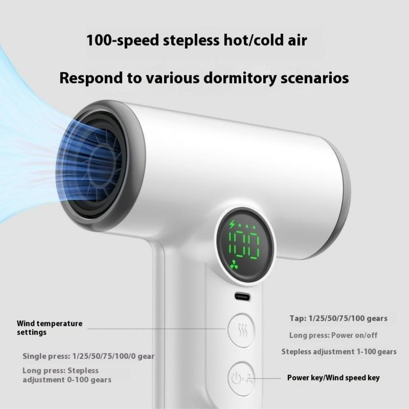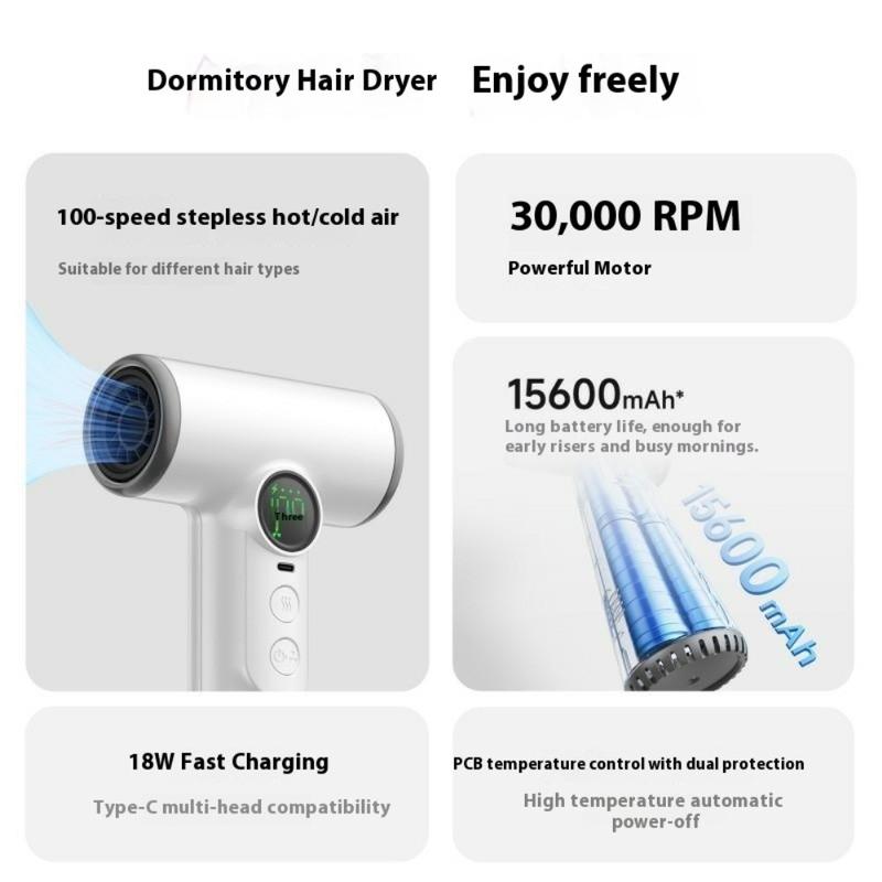Experimente a liberdade de criação de penteados profissionais em qualquer lugar com o secador de cabelo sem fios, uma solução sem fios potente e portátil para viagens, vida no dormitório e cuidados de beleza em movimento. Equipado com um motor digital de alta velocidade de 30000 RPM, proporciona um caudal de ar forte e consistente, funcionando de forma silenciosa e eficiente. O avançado controlo de velocidade contínuo de 100 níveis permite-lhe afinar o fluxo de ar e a temperatura com precisão - alternando facilmente entre ar frio e quente para qualquer tipo ou estilo de cabelo. Alimentado por uma bateria recarregável de 15600mAh, proporciona um tempo de funcionamento prolongado e até funciona como um banco de energia para carregar outros dispositivos. Com regulação inteligente da temperatura, dupla proteção contra sobreaquecimento e um visor LED inteligente, este secador garante um desempenho seguro e uma comodidade sem esforço onde quer que vá.