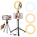 K50 Tripé de selfie com clipe duplo para telemóvel e Bluetooth com controlo remoto