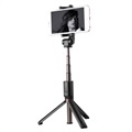 A alça deste selfie stick vem com um controlo remoto removível do obturador Bluetooth que se abre para transformar num tripé útil para dar estabilidade ao seu smartphone. Isto permite que você tire fotos de até 10m de distância enquanto o dispositivo está montado com segurança e pronto para tirar fotos.