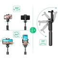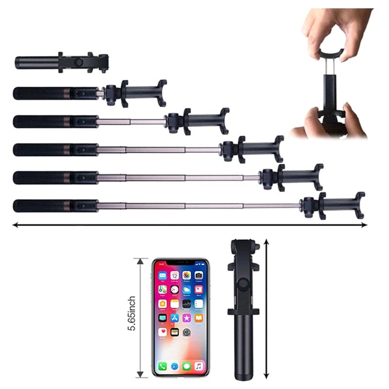 O selfie stick fica em tamanho miniatura, do tamanho do seu smartphone, o que permite carregá-lo no bolso ou na mala. O design 2 em 1 elimina a necessidade de carregar vários acessórios.