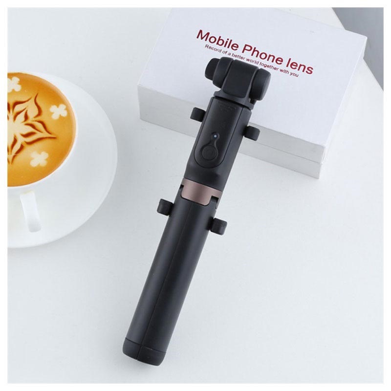 Um stick universal para selfies para smartphones que vem com um obturador de selfies Bluetooth 3.0 e funciona como um tripé.
