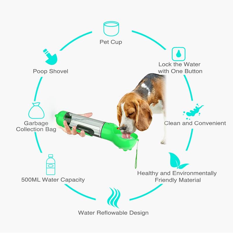 - Grande capacidade de 500 ml: Fornece água suficiente para o seu animal de estimação durante passeios ao ar livre, caminhadas ou viagens.