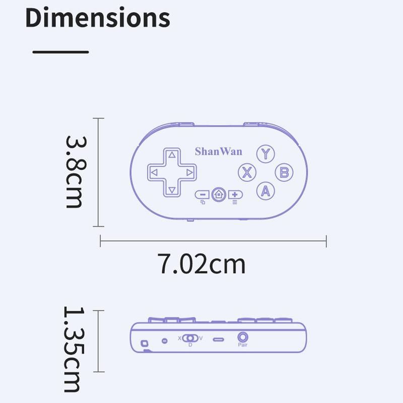 Transforme qualquer pausa rápida em tempo de jogo com o mini controlador de jogos Bluetooth SHANWAN. Concebido para jogos portáteis, é ultraleve, com apenas 0,024 kg, e suficientemente compacto para caber num bolso, ao mesmo tempo que proporciona controlos responsivos e feedback de vibração para uma sensação mais envolvente. Com uma ligação Bluetooth estável e um carregamento USB-C prático, é uma escolha inteligente para os jogadores móveis e para todos os que pretendem um comando prático para sessões casuais em dispositivos compatíveis.