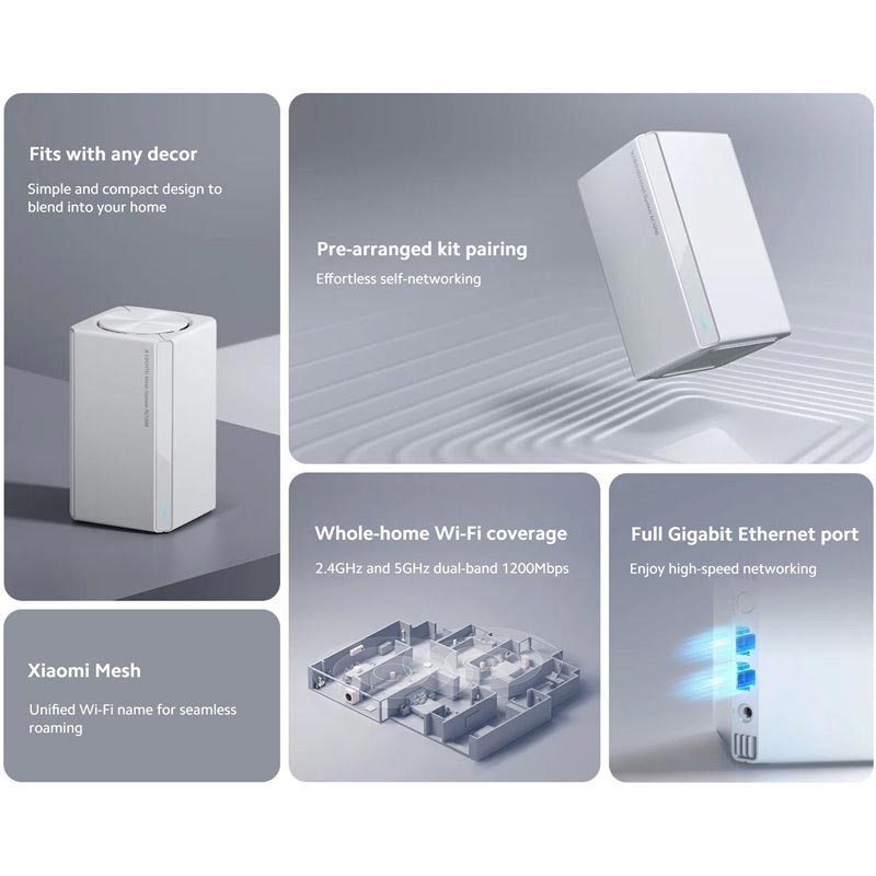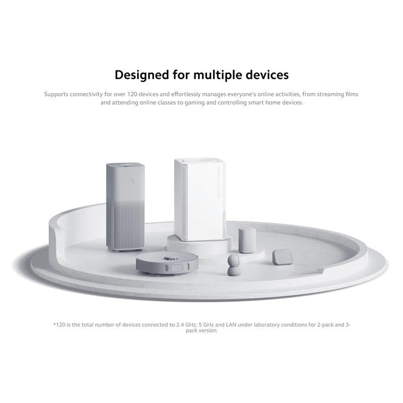 O Xiaomi Mesh System AC1200 é uma solução Wi-Fi inteligente para toda a casa, concebida para proporcionar uma cobertura de Internet estável, rápida e sem interrupções em toda a sua casa. Com velocidades sem fios de banda dupla até 1200 Mbps, portas Gigabit Ethernet completas e tecnologia Xiaomi Mesh, ajuda a eliminar áreas com sinal fraco e mantém a sua ligação estável enquanto se desloca de divisão em divisão.