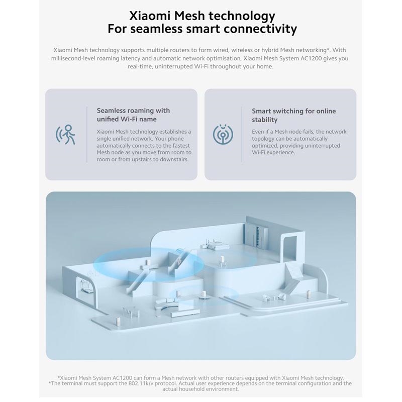 Sistema Mesh Xiaomi AC1200 - Router Mesh Wi-Fi Gigabit de banda dupla para toda a casa