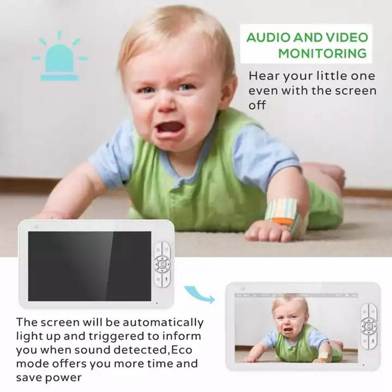 SM70PTZ Monitor digital sem fios para bebés de 7 polegadas Câmara de conversação bidirecional Dispositivo de segurança doméstica Câmara Web de 2,4 GHz com suporte para visão nocturna / Monitorização da temperatura - Ficha UE