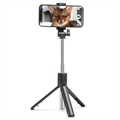 Bastão para selfies / Tripé telescópico com suporte para telemóvel - 1.75m - Preto