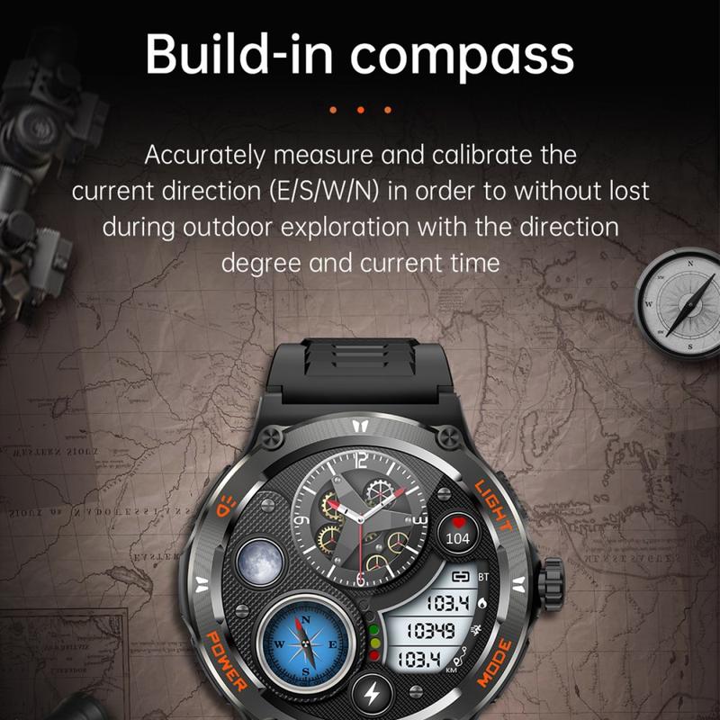 Smartwatch KT76 à prova de água, estilo exterior, com bússola e lanterna - 1.53"
