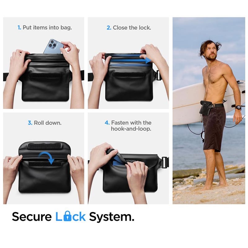 - Conjunto de praia Spigen A621: bolsa de cintura à prova d'água, caixa à prova d'água flutuante