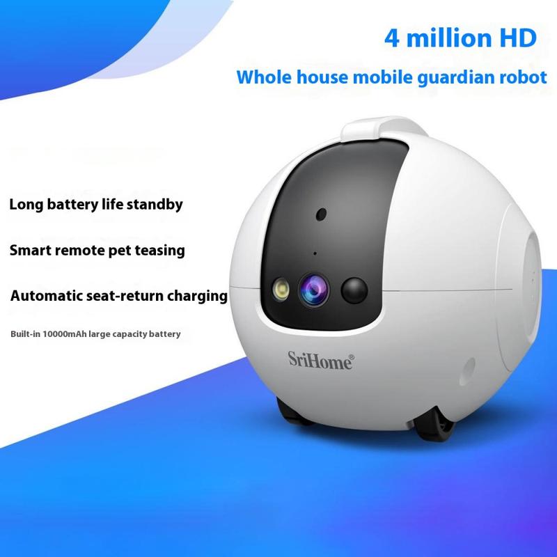 SRIHOME DH013 AI Robô Câmara Inteligente for Pet Monitor com estação de carregamento - Interação inteligente de IA, vista 360, visão nocturna a cores, áudio bidirecional e bateria de 10000mAh