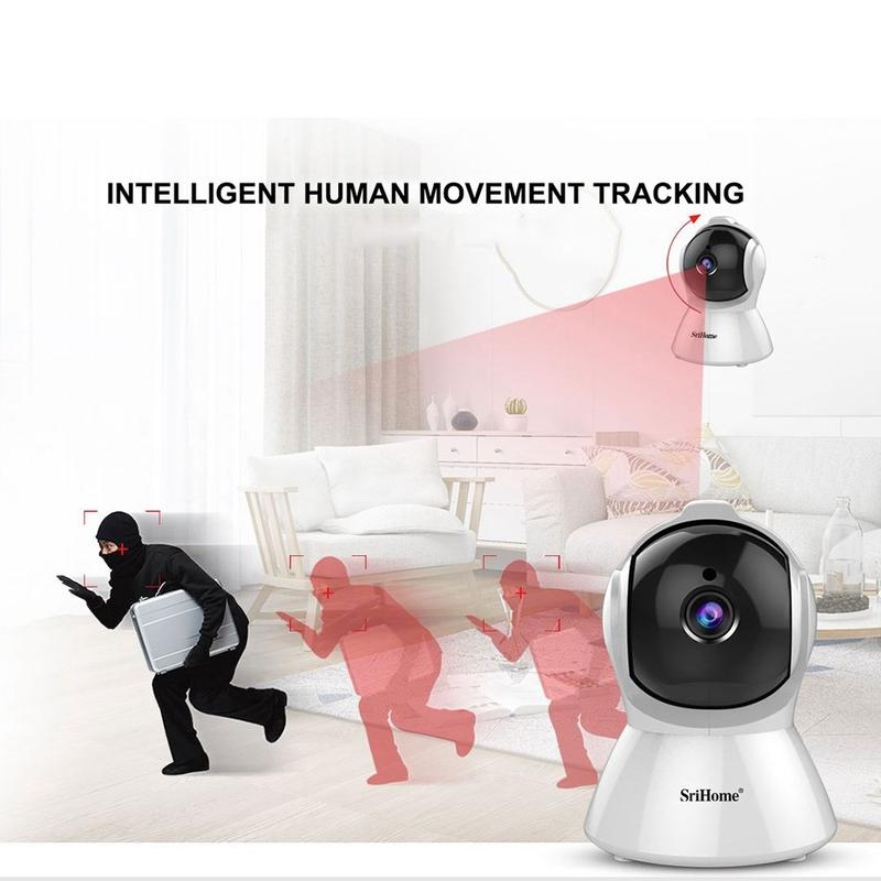 SriHome SH025 AI WiFi Câmara de segurança doméstica com áudio bidirecional e visão nocturna - 1080P