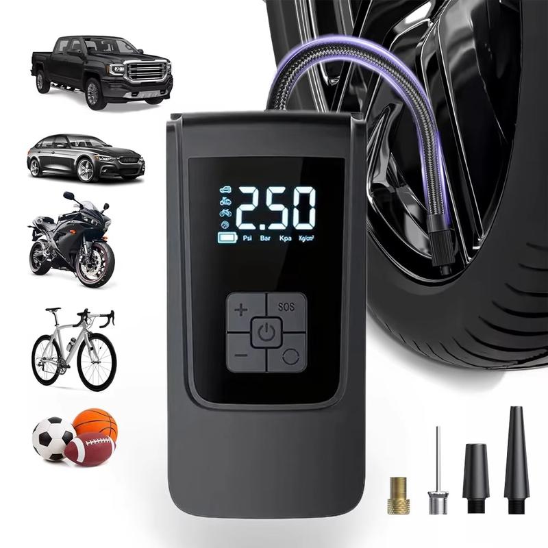 Os infladores de pneus portáteis são populares porque a pressão correta dos pneus pode ajudar a melhorar o conforto de condução, o desgaste dos pneus e a eficiência geral do veículo. Os visores digitais de pressão tornaram-se especialmente comuns porque facilitam o enchimento com maior precisão do que os modelos analógicos mais antigos. Os compressores de ar compactos também são amplamente utilizados para além dos pneus de automóvel, uma vez que os acessórios de bicos podem torná-los úteis para bicicletas e insufláveis de menor dimensão. Muitos condutores mantêm um na bagageira como parte do seu kit de emergência diário para o carro.