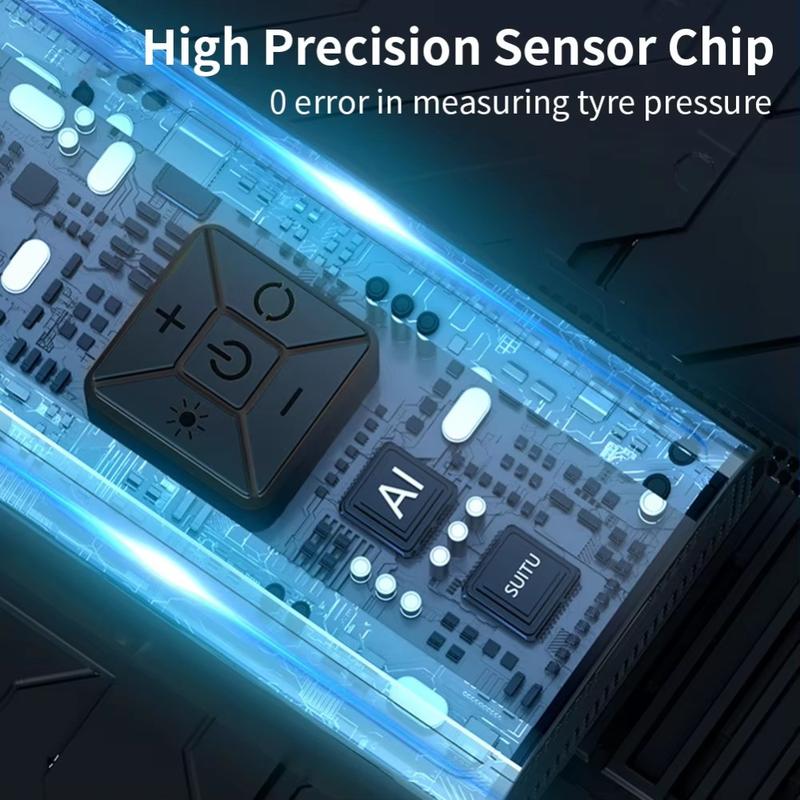 - O ecrã digital inteligente mostra a pressão dos pneus de forma clara, com uma precisão de 1,5 PSI, para um enchimento mais preciso.