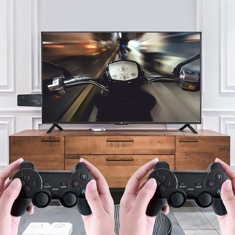 Só é necessário ligar a consola de jogos à interface do televisor, o cabo de dados da fonte de alimentação USB ao anfitrião, a fonte do televisor é ajustada ao canal de alta definição correspondente para apresentar o ecrã da lista de jogos no televisor e o controlador é colocado na bateria para controlo remoto