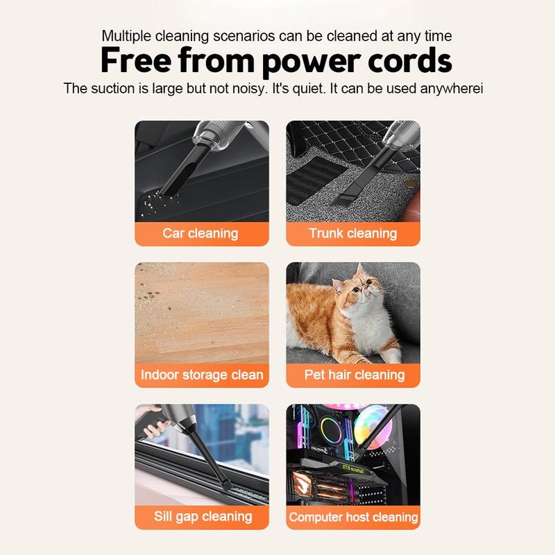 - Interiores de automóveis: Limpa migalhas, pêlos de animais e pó dos bancos e tapetes.