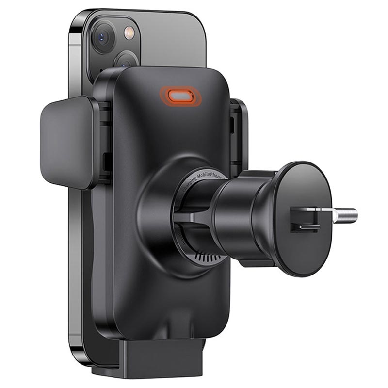 Este carregador sem fios de 15W está equipado com um mecanismo inteligente que se ajusta automaticamente a telefones de 4,7" a 7,5", e o seu chip inteligente adapta a potência de carregamento ao seu dispositivo. Este carregador e suporte sem fios 2 em 1 é feito para ser montado na conduta de ar do veículo.