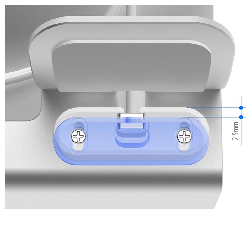 During charging, all your devices are held in a perfect viewing position. An adjustable structure on the charging stands for the iPhone and AirPods allow charging your gadgets with the protective case. The maximum thickness of the iPhone case can be 2.5mm.