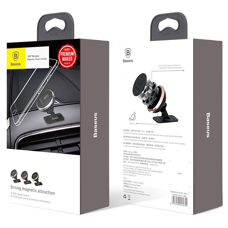O design compacto, fácil instalação e praticidade que o suporte magnético universal para carro Baseus oferece a você. Você pode anexá-lo em qualquer superfície plana, enquanto a rotação de 360 graus permite ajustar seu smartphone em um ângulo de visão perfeito. Um forte ímã de neodímio fornece uma aderência firme ao seu dispositivo e evita tremores em estradas esburacadas.