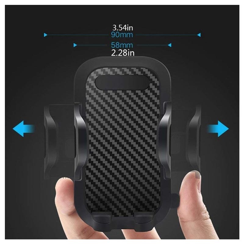 Mantenha o seu smartphone perto de si, enquanto conduz, com este suporte de carro universal e rotativo a 360 graus! Este suporte poderoso, com almofadas antiderrapantes e estabilizador adicional, segura firmemente o seu smartphone. O gancho expansível suporta dispositivos com uma largura entre 58mm e 90mm.