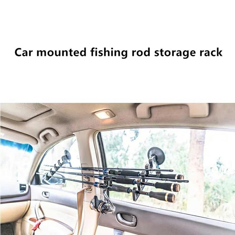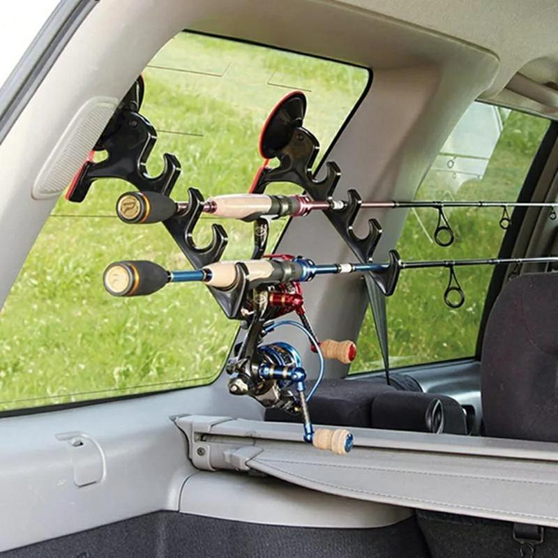 Suporte de vara de pesca com ventosa para automóvel - Organizador de vara anti-emaranhado com 4 hastes em ABS para janela de veículo, 4 ranhuras (24 × 12 cm)