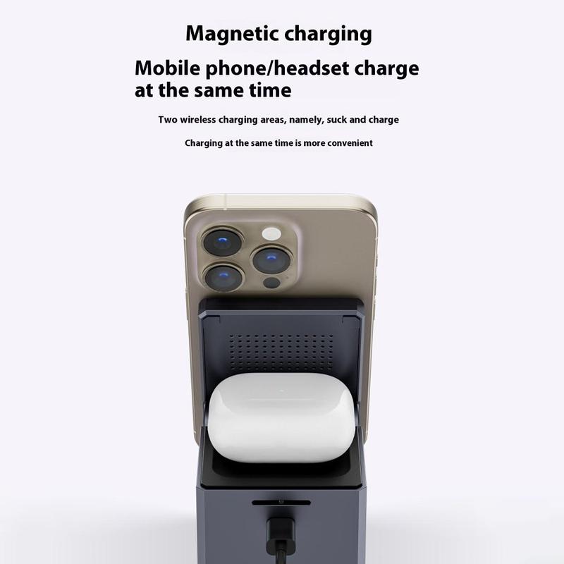 - Carregamento 3 em 1: Suporta carregamento simultâneo para iPhone, Apple Watch e AirPods.